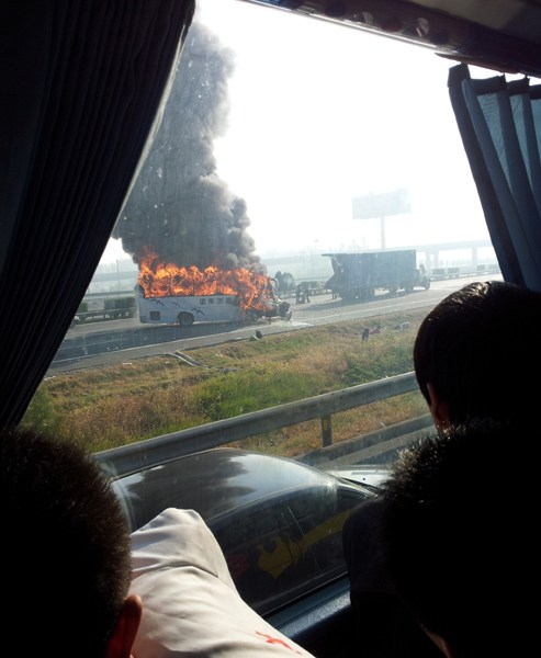 京滬高速大客車追尾起火致6人死