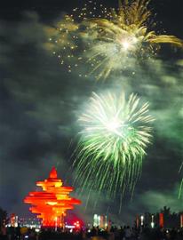 據(jù)介紹,此次焰火燃放采用了高科技焰火燃放設備控制發(fā)射,根據(jù)煙花的不同形態(tài)、色彩,編織出多層次、多形態(tài)、多色彩的大型立體景觀圖案,使煙花可以形成動感的立體畫面。(記者 劉延青)