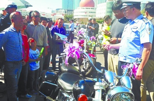 ????指揮中心立即調(diào)派附近執(zhí)勤的市南交警香港西路中隊(duì)民警往前盤查。當(dāng)這一車隊(duì)行駛至澳門路短暫停留時(shí),數(shù)輛警車一齊抵達(dá)澳門路,將6輛摩托車全部包圍。這6輛摩托車都是哈雷、寶馬等豪華摩托車,每輛的價(jià)值都在20萬元以上,有的車型甚至近30萬元。為了不影響婚車進(jìn)度,將違法摩托車查獲后,民警將婚車檢查后放行。