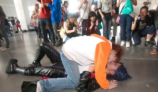 女女倒地激吻