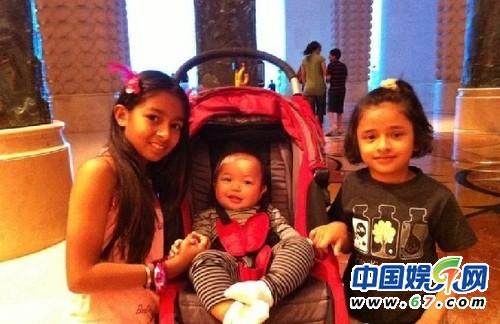 趙薇一家三口中秋度假照