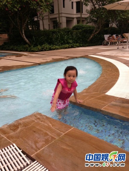 趙薇一家三口中秋度假照