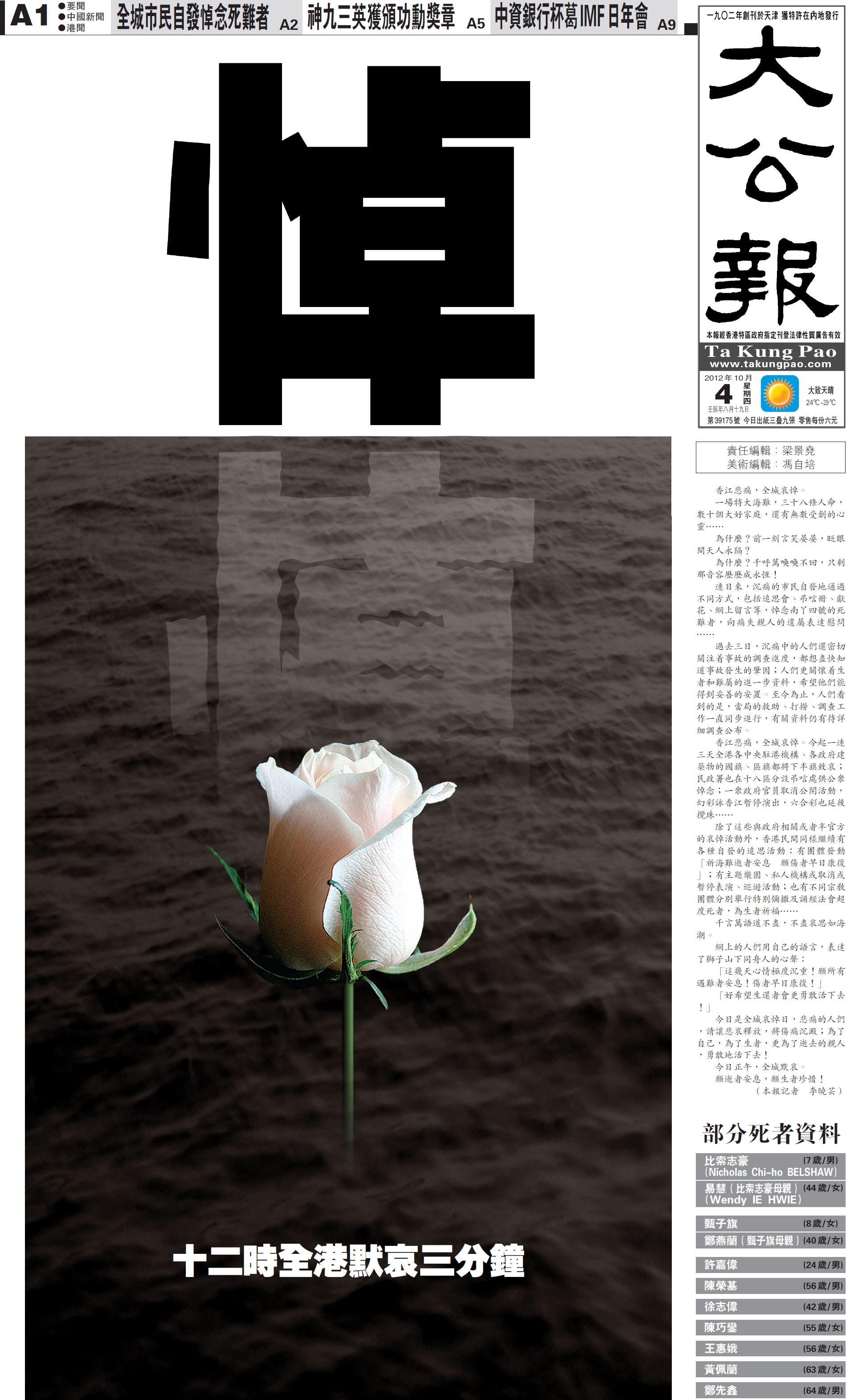 過去三日,沉痛中的人們還密切關(guān)注著事故的調(diào)查進度,都想盡快知道事故發(fā)生的肇因;人們更關(guān)懷著生者和難屬的進一步資料,希望他們能得到妥善的安置。至今為止,人們看到的是,當(dāng)局的救助、打撈、調(diào)查工作一直同步進行,有關(guān)資料仍有待詳細調(diào)查公布。