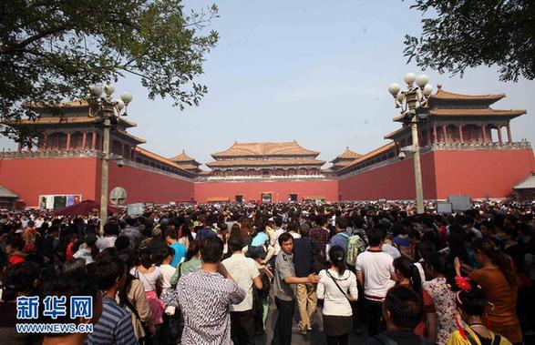 當(dāng)日是中秋國慶假期的第三天,北京故宮博物院持續(xù)客流高峰,截至16時,參觀人數(shù)達18.2萬人次,創(chuàng)單日歷史新高?! ⌒氯A社發(fā)(陳曉根攝)