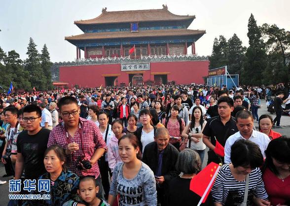 當日是中秋國慶假期第三天,北京故宮博物院持續(xù)客流高峰,截至16時,參觀人數(shù)達18.2萬人次,創(chuàng)單日歷史新高?! ⌒氯A社發(fā)(胡國林攝)