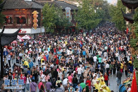 10月1日,江蘇南京夫子廟景區(qū)游人如織。當(dāng)日是國慶節(jié),南京夫子廟景區(qū)內(nèi)游客摩肩接踵,來自全國各地的游客在秦淮河畔賞美景,品美食,歡度佳節(jié)。新華社發(fā)(顏閩航 攝)