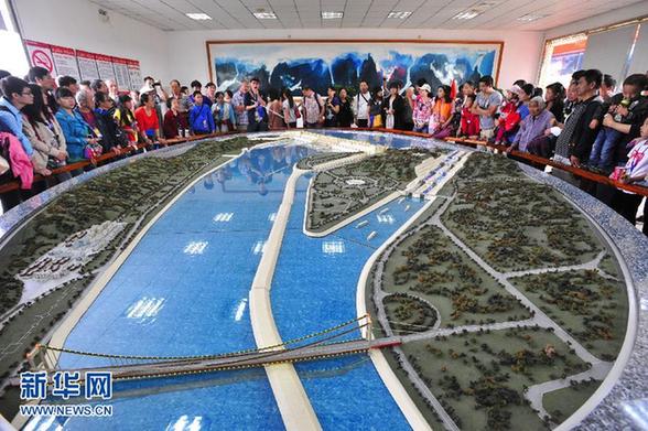 10月2日,游客在三峽大壩景區(qū)內(nèi)觀看三峽工程模型。今年“超長黃金周”期間,正值三峽水庫175米汛后試驗性蓄水,游客為一睹高水位下的三峽景觀紛至沓來。據(jù)三峽旅游總公司相關(guān)負(fù)責(zé)人介紹,10月1日國慶節(jié)當(dāng)日,景區(qū)共接待游客2.4萬人次,創(chuàng)下2011年以來的最高值,預(yù)計2日游客將達(dá)到3萬人次;長假前3天,游客總數(shù)將創(chuàng)下三峽大壩景區(qū)開放以來的歷史新高。新華社發(fā)(鄭家裕攝)