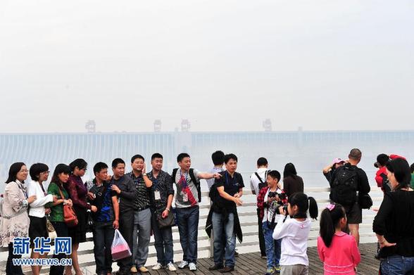 10月3日,游客在三峽大壩前游覽。當(dāng)日是中秋國慶長假的第四天,三峽大壩旅游區(qū)迎來旅游客流高峰,共接待中外游客4.7萬人次,創(chuàng)歷史新高。據(jù)長江三峽旅游公司市場部有關(guān)負(fù)責(zé)人介紹,中秋國慶長假四天來,三峽大壩旅游區(qū)已接待中外游客達11.5萬人次,整個長假預(yù)計游客人數(shù)有望達20萬人次。新華社發(fā)(王輝富攝)