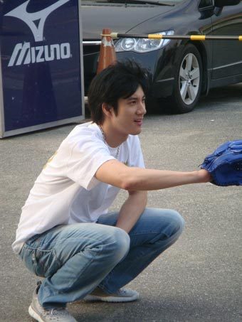 王力宏絕對(duì)的素顏----路邊和好朋友黑人打棒球。