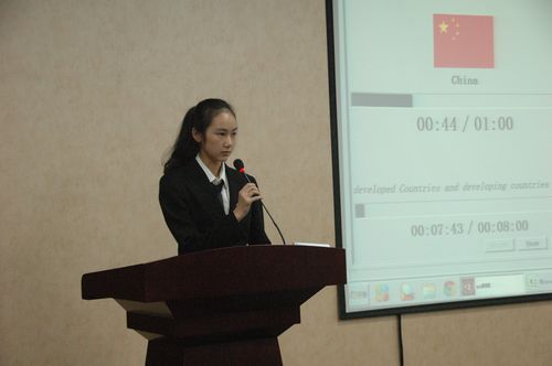 中國代表團(G2年級的Cynthia)針對森林砍伐及荒漠化的議案做出演講