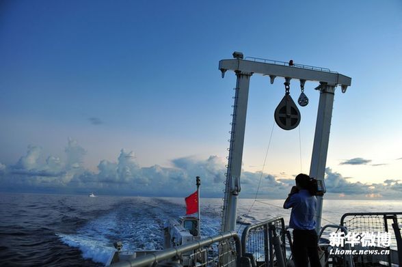 9月14日清晨,中國海監(jiān)船編隊(duì)向釣魚島海域全速前進(jìn)。