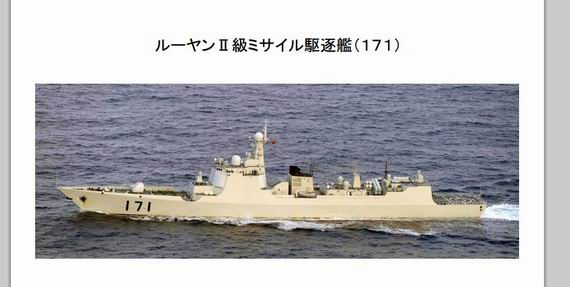 資料圖:日本海上自衛(wèi)隊(duì)P-3C拍攝到的中國海軍171號(hào)052C型導(dǎo)彈驅(qū)逐艦。
