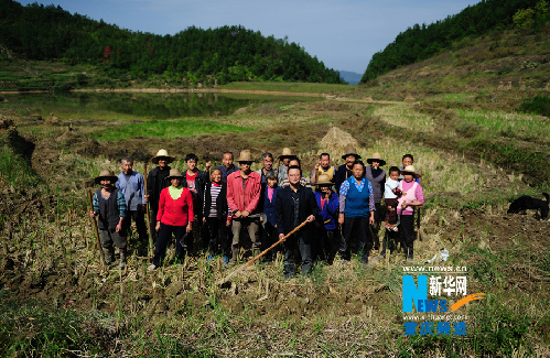 10月17日,楊大可和他雇傭的農(nóng)民在重慶市云陽(yáng)縣高陽(yáng)鎮(zhèn)新開(kāi)辟的種植基地上合影 本組圖片由黃俊輝攝