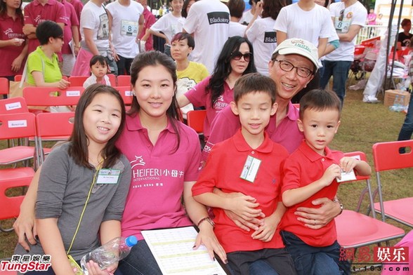 伏明霞一家出席慈善活動