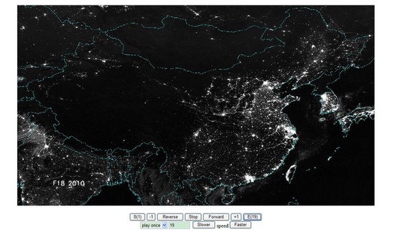 昨日,現(xiàn)代快報(bào)記者在美國國家海洋和大氣管理局(NOAA)的官方網(wǎng)站上找到一組“世界可再生能源和燈光”衛(wèi)星圖,也就是網(wǎng)上流傳的“中國夜景衛(wèi)星圖”的原圖。這組圖來自美國空軍的國防氣象衛(wèi)星拍攝的數(shù)據(jù),它在夜間捕捉能源和燈光的能力被NOAA贊為“獨(dú)一無二”。這組圖包括了世界上所有的國家,是NOAA在2011年8月發(fā)布的,主要用來展示從