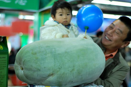 首屆山東國際農(nóng)交會在城陽區(qū)開幕,圖為碩大的冬瓜