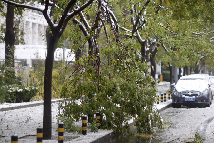 11月4日凌晨,北京迎來(lái)今年首場(chǎng)降雪。清晨的北京已經(jīng)布滿(mǎn)積雪,一棵樹(shù)的樹(shù)枝被降雪砸斷。