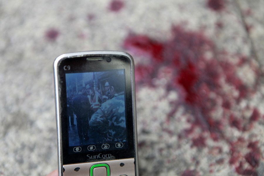 11月3日,湖南株洲,目睹事發(fā)經(jīng)過的市民用手機記錄了環(huán)衛(wèi)工人被警方帶走的瞬間。