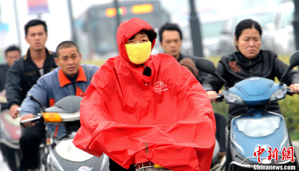 11月9日,人們在冬雨綿綿中的蘇州市人民橋上騎行。自11月9日凌晨起,江蘇蘇州市范圍內(nèi)下起了今年入冬以來的第一場綿綿冬雨,氣溫明顯下降,讓人倍感絲絲初冬寒意。騎車市民披著五彩雨披,行人撐起了繽紛雨傘,風吹雨打落葉滿地……為初冬蘇州街頭增添了一道道亮麗的風景。