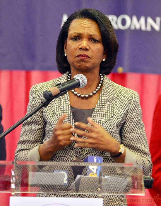 美國前國務(wù)卿賴斯:單身多年,但被卡扎菲暗戀。圖為2012年11月5日,拉斯參加羅姆尼的競選活動。