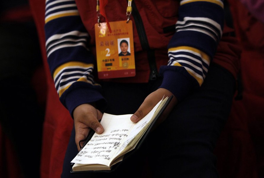 11月11日,十八大新聞中心,中國少年報的小記者跑新聞發(fā)布會,他們要報道開閉幕會,聽小組討論等。小記者的筆記本上記滿筆記。