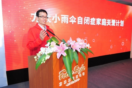 ????著名心理學(xué)家夏東豪老師致辭? ????作為中國(guó)廚電的領(lǐng)導(dǎo)品牌,寧波方太集團(tuán)不只為客戶提供最好的產(chǎn)品和服務(wù),更通過(guò)慈善行動(dòng)、教育與文化、環(huán)保行動(dòng)、社區(qū)活動(dòng)來(lái)持續(xù)促進(jìn)社會(huì)和諧發(fā)展。從2007年至今,方太先后成立慈善基金、興建養(yǎng)老院、組織慈善義演、向地震災(zāi)區(qū)捐款……方太致力于“讓家的感覺(jué)更美好”,家庭的健康才能成就社會(huì)的美好,而自閉癥家庭作為千千萬(wàn)萬(wàn)社會(huì)家庭的組成部分,其幸福與美好更加牽動(dòng)著方太集團(tuán)每位公益事業(yè)推進(jìn)者的心。上海第一財(cái)經(jīng)傳媒有限公司以及旗下《第一財(cái)經(jīng)周刊》隸屬于上海東方傳媒集團(tuán)有限公司,其媒體視角立足商業(yè)前沿,關(guān)注各項(xiàng)商業(yè)領(lǐng)域的創(chuàng)新,而企業(yè)社會(huì)責(zé)任的新嘗試、新拓展更是商業(yè)創(chuàng)新領(lǐng)域不可或缺的一部分。此次與方太集團(tuán)攜手共同推出針對(duì)自閉癥家庭的關(guān)愛(ài)計(jì)劃,意味著企業(yè)社會(huì)責(zé)任行動(dòng)與媒體社會(huì)責(zé)任視野相結(jié)合,從社會(huì)傳播的角度將關(guān)愛(ài)行動(dòng)擴(kuò)展到最大化的真正實(shí)踐?!?012方太小雨傘自閉癥家庭關(guān)愛(ài)計(jì)劃”從2012年11月11日正式啟動(dòng),將歷時(shí)約6個(gè)月,期間以“快樂(lè)廚房”、“快樂(lè)運(yùn)動(dòng)”、“戶外拓展”三個(gè)項(xiàng)目為自閉癥家庭帶去形式豐富的互動(dòng)活動(dòng)。繼今天的新聞發(fā)布會(huì)暨關(guān)愛(ài)計(jì)劃啟動(dòng)儀式之后,“快樂(lè)廚房”將是此次計(jì)劃的第一個(gè)具體項(xiàng)目,其形式在于通過(guò)方太的廚房料理課程幫助家長(zhǎng)從生活中獲取歡樂(lè),并鼓勵(lì)自閉癥孩子多多參與,增進(jìn)其與父母的互動(dòng),從而實(shí)現(xiàn)讓自閉癥孩子突破思想、行為障礙,從小小的廚房料理中懂得互助、關(guān)懷與愛(ài),更深入地感受到家庭的幸福感;而隨后的“快樂(lè)運(yùn)動(dòng)”將邀請(qǐng)到上海男籃的職業(yè)運(yùn)動(dòng)員帶領(lǐng)家長(zhǎng)與孩子參與籃球比賽,讓他們?cè)谶\(yùn)動(dòng)中達(dá)成默契,在運(yùn)動(dòng)中尋找歡樂(lè),在運(yùn)動(dòng)中獲得身心健康,并給獲勝家庭頒獎(jiǎng);“戶外拓展”項(xiàng)目將在春天來(lái)臨之際,由方太集團(tuán)組織自閉癥家庭前往上海東方綠洲踏青,邀請(qǐng)專業(yè)戶外風(fēng)箏達(dá)人教孩子學(xué)做風(fēng)箏,并在父母的帶領(lǐng)下給風(fēng)箏畫上美麗的圖畫,而圖畫所寄托的美好期望也將隨著風(fēng)箏共同放飛到藍(lán)天與陽(yáng)光之中。