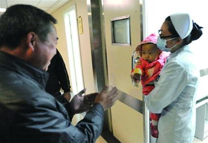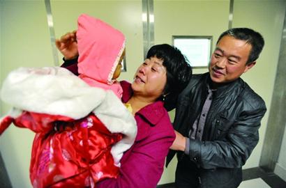 一些得知小雪出院的市民紛紛趕到醫(yī)院看望小雪。“我女兒4個多月大,當了父親以后,特別受不了孩子生病遭罪,在報紙上看到小雪流淚的眼睛,天天都掛念著她?!笔忻裰芟壬f。此時的韓通寶在重癥監(jiān)護室門前焦急地等待,不斷探身從門縫里向里張望,看看護士是否將小雪抱出來了。下午3時許,監(jiān)護室的門緩緩打開,護士抱著小雪走了出來??吹叫⊙┏鰜砹?,韓通寶夫婦張開雙手迎了上去,小雪住院18天來,夫婦兩人每天都盼望小雪出院的這一天。小雪媽媽告訴記者,來接孩子是件喜慶的事,為討個好彩頭,出門時她特意穿了件紅色外套。從醫(yī)務人員手中接過小雪,夫妻二人眉開眼笑,一個勁叫著小雪的名字。叫著叫著,小雪媽媽的眼淚就流了出來,接著又哭了起來。“18天沒見著俺閨女了,這一見面有些激動?!毙⊙寢尣亮艘话蜒蹨I,轉(zhuǎn)而破涕為笑。