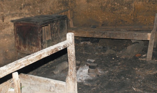 陶進(jìn)才告訴新京報(bào)記者,13歲的陶中林讀到小學(xué)三年級,因?yàn)槌煽儾缓?,輟學(xué)回家放牛;11歲的陶中紅因?yàn)樵?jīng)中途輟學(xué),今年9月報(bào)名未成功,改上村里200元一期的學(xué)前班;另外兩個(gè)孩子,陶沖和陶波,因?yàn)闆]有戶口,只上了一年學(xué),就因是“黑戶”,沒法繼續(xù)報(bào)名而輟學(xué)。一死者家的土坯房內(nèi),家徒四壁。(新京報(bào)記者 劉剛 攝)