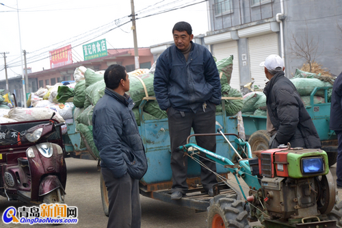 在村口的馬路上,停了好幾輛收購山楂的貨車,手扶拖拉機來回穿梭,裝袋的山楂被陸續(xù)撞上貨車,裝車、點數(shù)、算錢,一派繁忙景象。