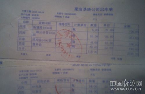 ????圖為粟海集團(tuán)為養(yǎng)殖戶統(tǒng)一配藥的出庫(kù)單。