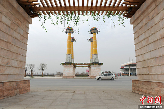 28日,針對網(wǎng)絡(luò)盛傳的西安市周至縣酷似巨型香煙的北大門景觀,記者趕赴周至縣采訪。周至縣回應(yīng)稱,縣城北大門項(xiàng)目為大周萬景商貿(mào)城建設(shè)項(xiàng)目的一部分。大周萬景商貿(mào)城建設(shè)項(xiàng)目作為2011年周至縣招商引資的城市建設(shè)項(xiàng)目,符合縣城規(guī)劃要求。近日,有關(guān)“陜西貧困縣百萬建造北大門似巨型香煙”的帖子在貼吧、論壇及微博上流傳,引發(fā)網(wǎng)絡(luò)熱議。圖為北大門“景觀”。