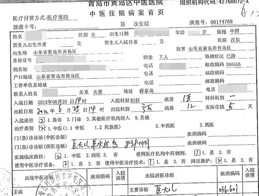 ????據(jù)顧先生講述,2012年6月20日,妻子在黃島中醫(yī)院婦產(chǎn)科待產(chǎn),這是他們的第二個孩子,產(chǎn)前檢查顯示一切正常,只是羊水多,醫(yī)生表示可以進行順產(chǎn)。