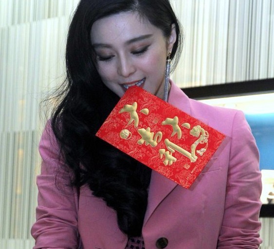 范冰冰賣萌被猥瑣大叔攬入懷 嘴刁紅包剪彩(組圖)