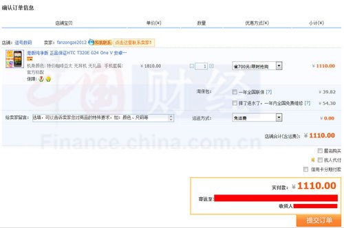 ????淘寶購(gòu)買手機(jī)訂單頁(yè)面截圖 (圖片來(lái)源:中國(guó)網(wǎng))