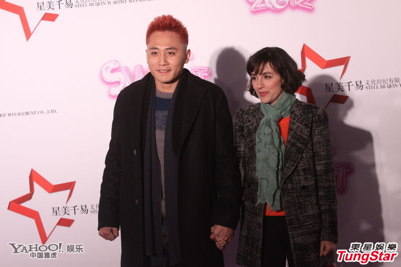 宋祖英穿火紅潮裝年輕style 閃光棒球帽配橘色手袋(圖)