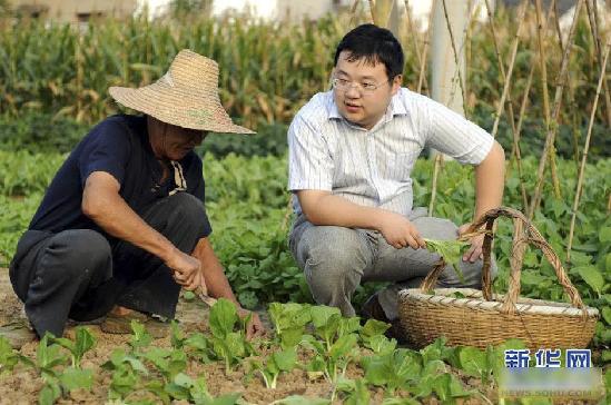 2012年9月17日,石磊在查看蔬菜長勢,并向西花村村民詢問價格情況。