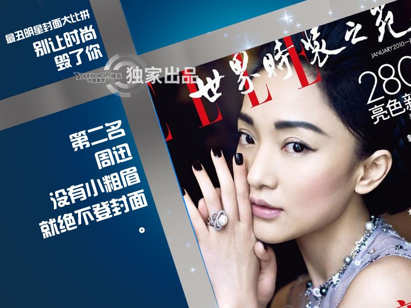 女星最丑封面PK:周迅粗眉可分切糕 章子怡變非洲人(圖)