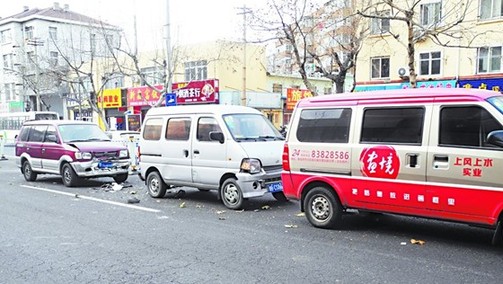 ????13日11時(shí)30分左右,人民路立交橋西向東上橋口附近發(fā)生一起車禍,一輛面包車在行駛過程中為躲避一只橫穿馬路的小狗突然急剎車,導(dǎo)致車后一輛面包車和另一輛越野車接連撞了上來,三輛車都嚴(yán)重受損,所幸未造成人員傷亡。在現(xiàn)場,這只小金毛犬已經(jīng)停止了呼吸。記者發(fā)稿時(shí),車主與狗的主人并沒有就賠償方案達(dá)成協(xié)議。