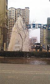 “就是這輛罐車,它在倒車時(shí)撞到了路邊的消防栓上,消防栓被撞斷,就成這個(gè)樣子了,天這么冷,要是再不關(guān)掉水管閥門,估計(jì)到了晚上這一路段就成溜冰場(chǎng)了。 ”一名圍觀者說。