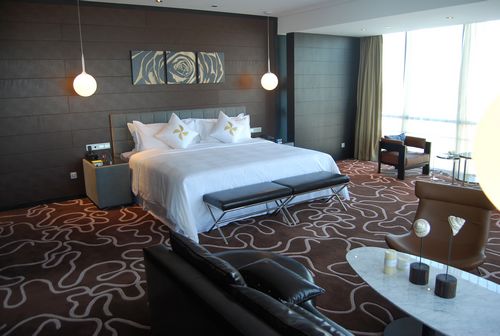 位于福朋酒店25樓的總統(tǒng)套房面積480平米,擁有三面看海的絕佳角度,房間風(fēng)格典雅、舒適,目前這種房間的售價(jià)高達(dá)每晚15800元。此外,酒店還有大小不等的商務(wù)套房,以滿足不同群體客人的需求。