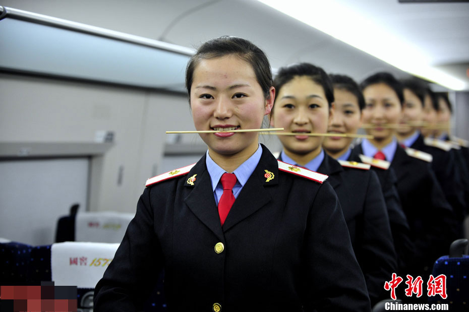 12月19日,西安客運(yùn)段的高鐵乘務(wù)員正在進(jìn)行服務(wù)技能訓(xùn)練。近日,西安鐵路局西安客運(yùn)段動車隊(duì)對即將上崗的西安至北京高鐵乘務(wù)員進(jìn)行服務(wù)禮儀、安全作業(yè)等方面的強(qiáng)化培訓(xùn),為京廣高鐵正式開通運(yùn)營做準(zhǔn)備。京廣高鐵北京至鄭州段將于12月26日開通運(yùn)營,鄭西高鐵同步調(diào)整列車運(yùn)行圖。屆時,西安至北京將開行10對高鐵動車組列車,最短運(yùn)行時間為4小時40分。(中新社發(fā) 唐振江 攝)