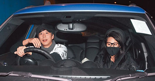 ????當日(10日)晚上9時許,鄧健泓與張嘉兒離開荃灣樂悠居寓所,搭乘電梯直下住戶停車場。當車子駛出停車場,本刊記者上前拍照。鄧健泓笑得尷尬,一度用手遮面。早有準備戴上黑口罩的張嘉兒,起初扮作氣定神閑,不過雙眼非常閃縮,之后更企圖低身避鏡頭。兩人沒有交談,鄧健泓也不肯停下回應,立即踩油門撇開記者。