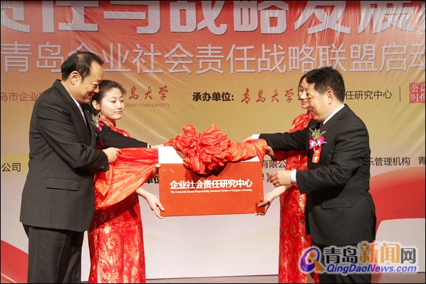 ????為了推動青島企業(yè)社會責任運動的開展,在青島市經(jīng)濟與信息化委員會領(lǐng)導(dǎo)下、青島市企業(yè)聯(lián)合會企業(yè)社會責任戰(zhàn)略聯(lián)盟工作委員會、青島大學企業(yè)社會責任研究中心聯(lián)合發(fā)起成立“中國?青島企業(yè)社會責任戰(zhàn)略聯(lián)盟”在本次論壇上正式成立。海爾集團、青啤集團、海信集團、雙星集團、澳柯瑪集團、利群集團、國風藥業(yè)、瑯琊臺酒業(yè)等30余家島城著名企業(yè)作為首批戰(zhàn)略聯(lián)盟成員參與了成立儀式。