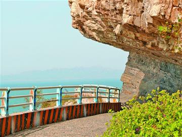 夕陽浴晚霞的時候,海島南端,一道山崖橫空出世,似一只臥身昂首的猛虎,此時可以看到“虎口含丹”的神奇畫景,這就是靈山島的著名景點(diǎn)老虎嘴。