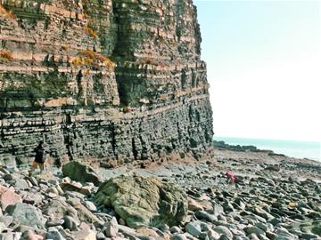 作為一座火山島,靈山島地質(zhì)獨(dú)特。在白堊紀(jì)早期,受地殼動蕩、后期褶皺和斷裂影響,形成了一系列雄奇險(xiǎn)峻的地質(zhì)景觀。由于海上風(fēng)浪太大,不少奇石在這一天都被海水淹沒,但在肖永軍的指引下,記者還是有幸近距離地觀賞一億三千多萬年才形成的自然奇觀——千層壁。據(jù)肖永軍介紹,經(jīng)過地質(zhì)專家的勘探,這處崖壁形成的原因是在白堊紀(jì)造山運(yùn)動非常劇烈,經(jīng)過大??駶О偃f年來的沖擊,深入水中的部分?jǐn)嗔殉蔀楹V械慕甘?,海岸就出現(xiàn)了這道壯觀的海蝕崖壁。近年來吸引了越來越多的游客前來觀光,也吸引了很多國內(nèi)外的地質(zhì)愛好者前來勘探研究。