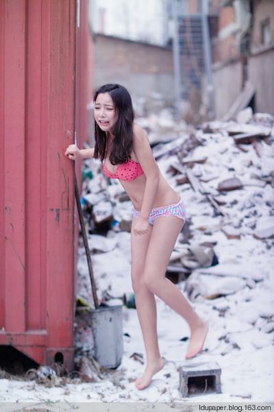 嫩模雪天比基尼展火辣腰身 慘遭冰雪折磨凍致流淚(圖)