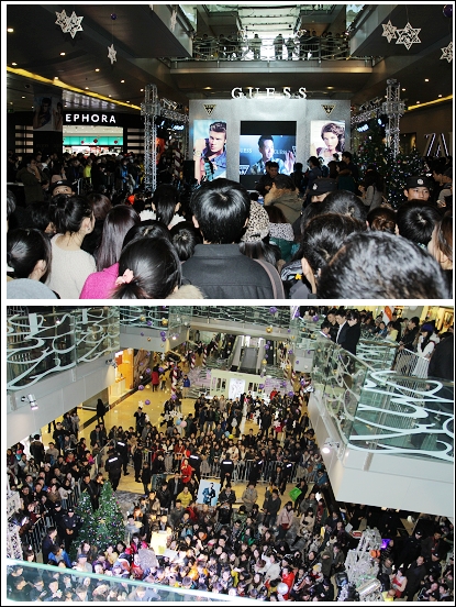 余文樂亮相青島百麗廣場GUESS Watches專柜粉絲“人滿為患”