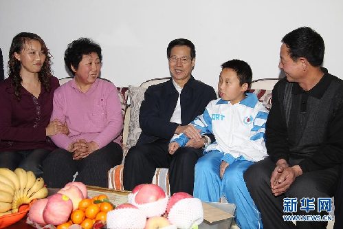 2012年1月16日,張高麗來到天津市北辰區(qū)雙街鎮(zhèn)雙街新村看望慰問困難戶鮑振興一家。 新華社發(fā)(宋子明 攝)