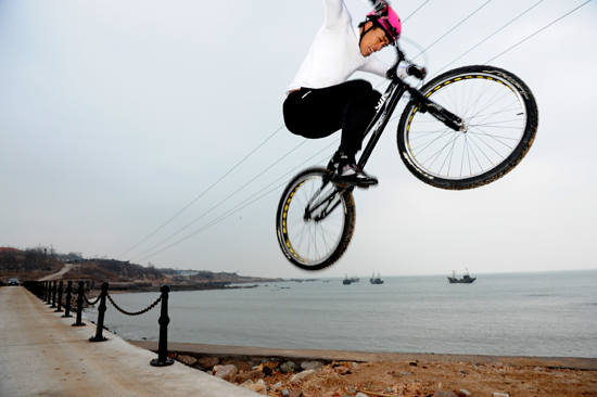 ?? 上海國(guó)際極限運(yùn)動(dòng)大師賽亞軍、全國(guó)錦標(biāo)賽亞軍,各種獎(jiǎng)項(xiàng)不勝枚舉。“我現(xiàn)在平地彈跳最高能達(dá)到一米四七,這個(gè)高度應(yīng)該是國(guó)內(nèi)攀爬自行車第一高度了?!睆埦├プ院赖母嬖V記者。