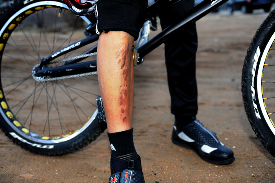 為練習(xí)攀爬自行車渾身傷痕累累